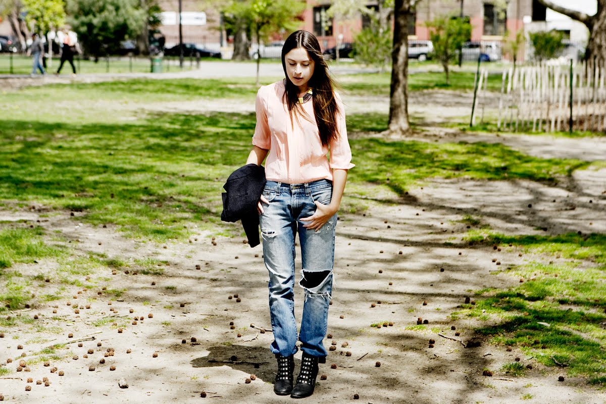 I get all of my husbands hand-me down denim which is awesome because he really wears them hard, everyday till they are nice and hole-y and distressed and wonderful. I usually can’t bear to put on anything other than these until around 3pm. For me, tight clothes in the a.m. just doesn’t feel right. Last night Alia and I went to the gym, then hit the steam room then came home and cooked a yummy dinner of Kale salad, carrot-ginger soup (I had made earlier in the week) and a nice bottle of red. The perfect rainy Friday night (in my opinion) Today I have improv class at Upright Citizens Brigade. I can’t believe our class show is next week already! Looking forward to the rain clearing up so I can take my new Freeway sunglasses for a spin. xx
